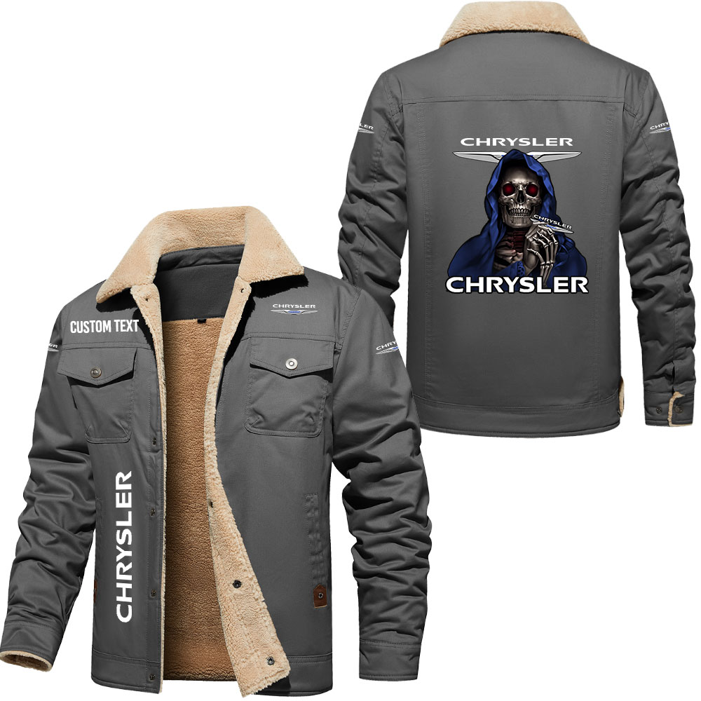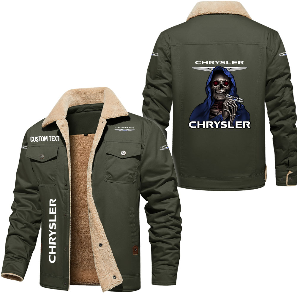 Chrysler Skull Art Print Custom Name Cargo Fleece Lined Cotton Jacket