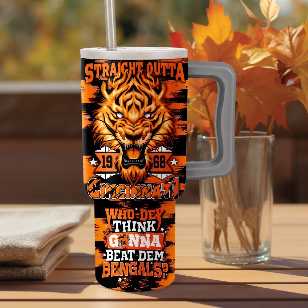 Cincinnati Bengals Custom Stanley Quencher 40Oz Stainless Steel Tumbler With Handle