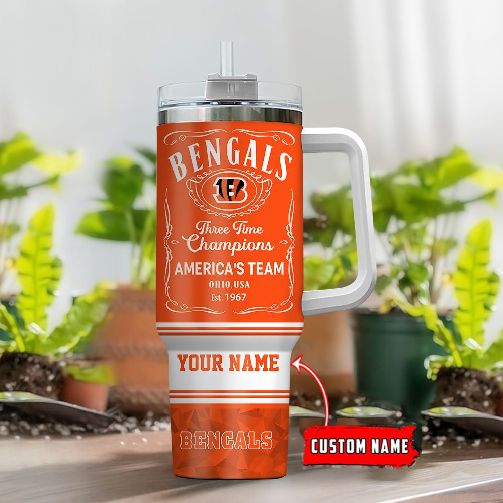 Cincinnati Bengals Nfl Custom Stanley Quencher 40Oz Stainless Steel Tumbler With Handle