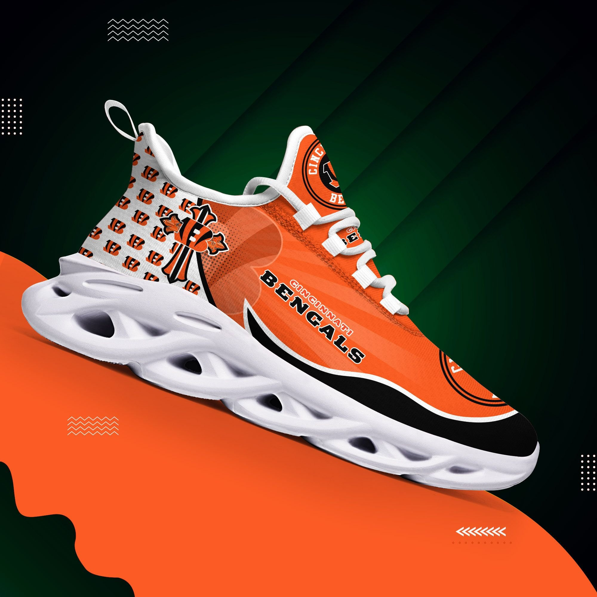 Cincinnati Bengals NFL Max Soul Shoes Sneakers Printed White And Black Sole For Men And Women