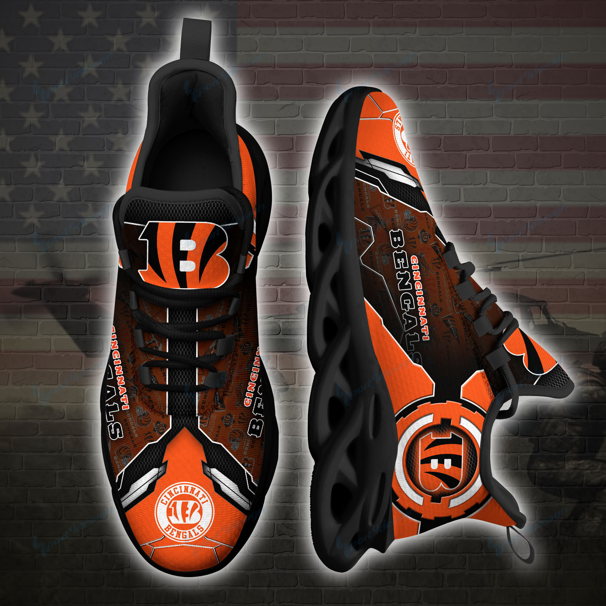 Cincinnati Bengals NFL Max Soul Shoes Sneakers Printed White And Black Sole For Men And Women