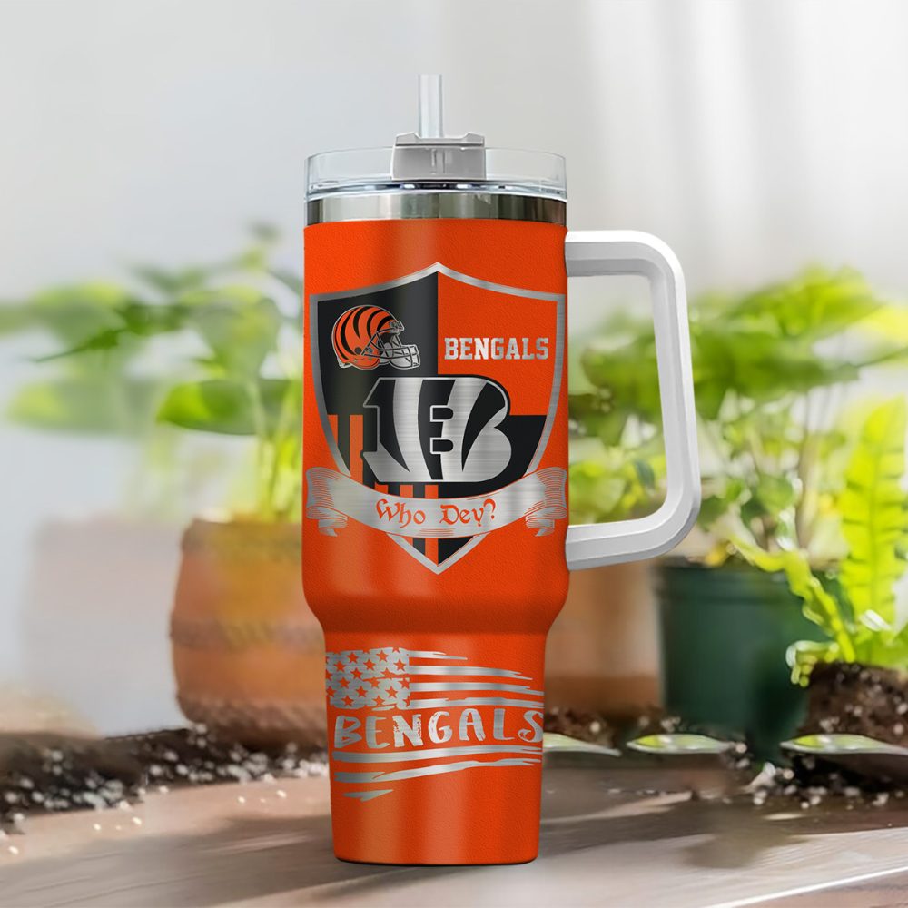 Cincinnati Bengals Nfl Silver Logo Custom Stanley Quencher 40Oz Stainless Steel Tumbler With Handle