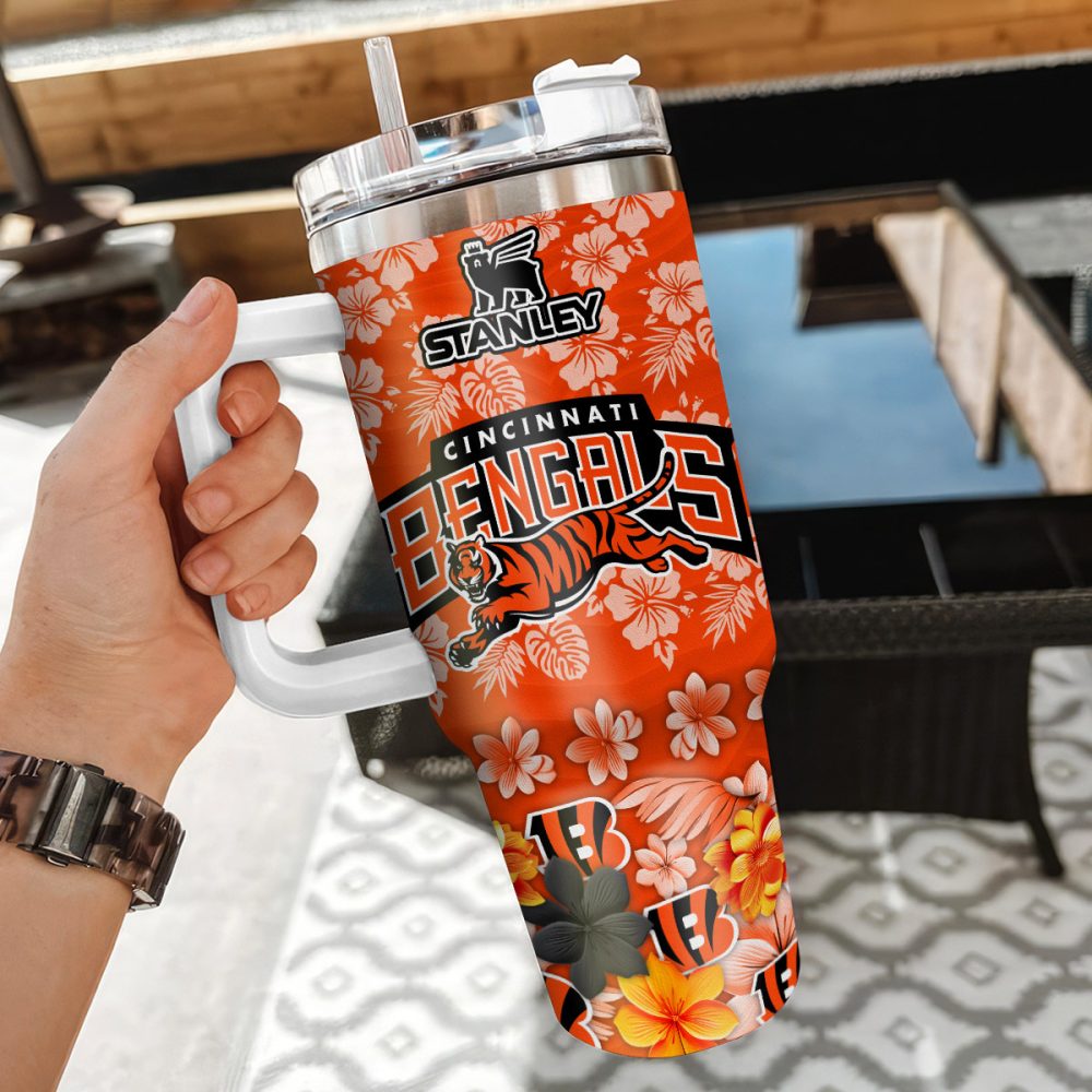 Cincinnati Bengals Nfl Tropical Floral Custom Stanley Quencher 40Oz Stainless Steel