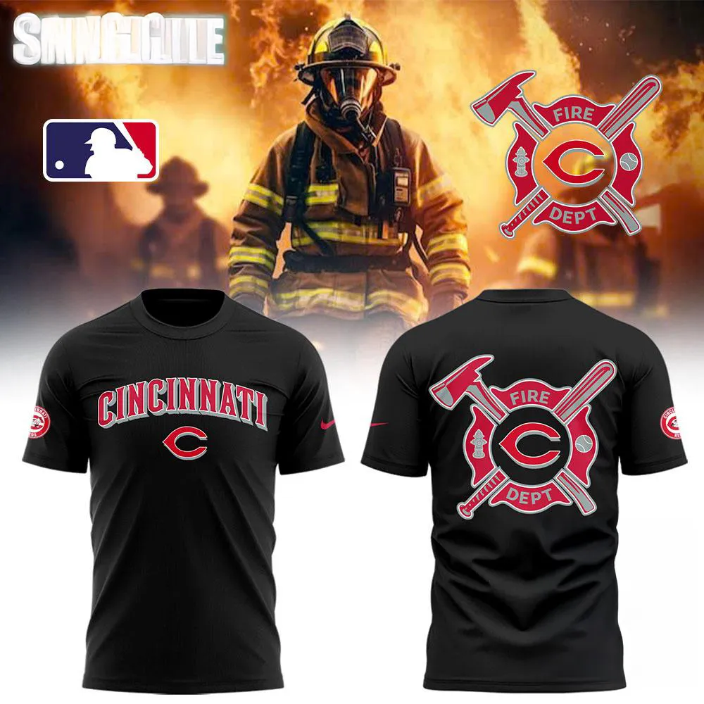Cincinnati Reds x Firefighter Appreciation Night 2025 Black T Shirt