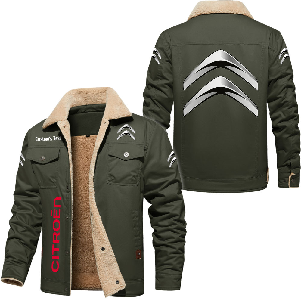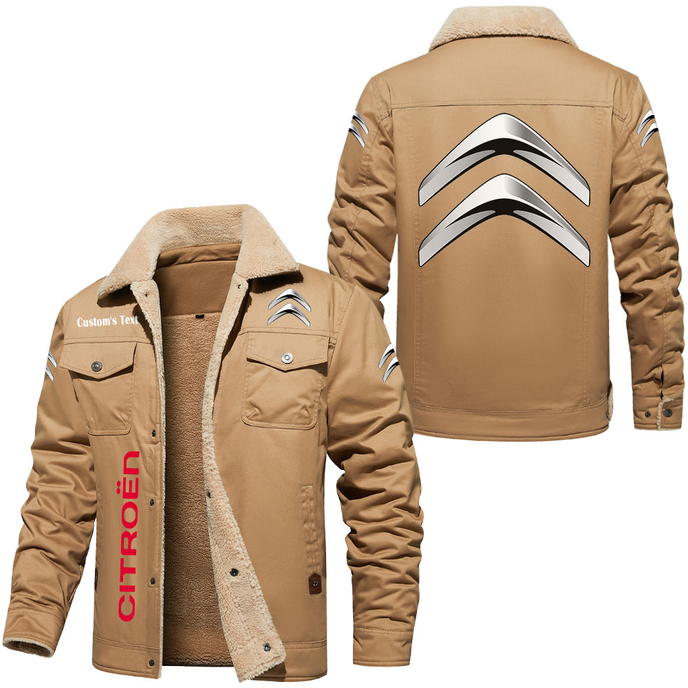Citroen Logo Custom Text Cargo Fleece Lined Cotton Jacket