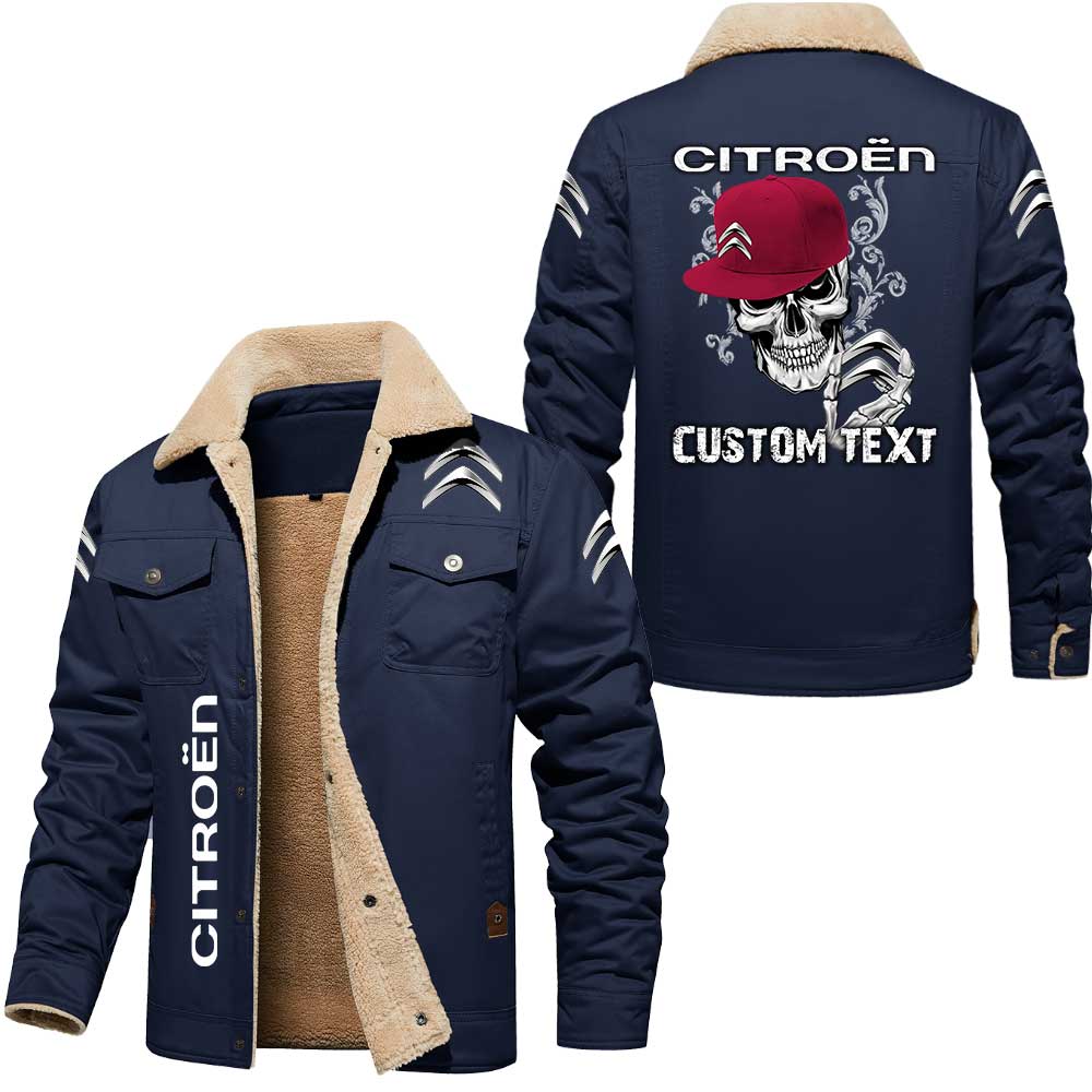 Citroen Skull Custom Name Cargo Fleece Lined Cotton Jacket