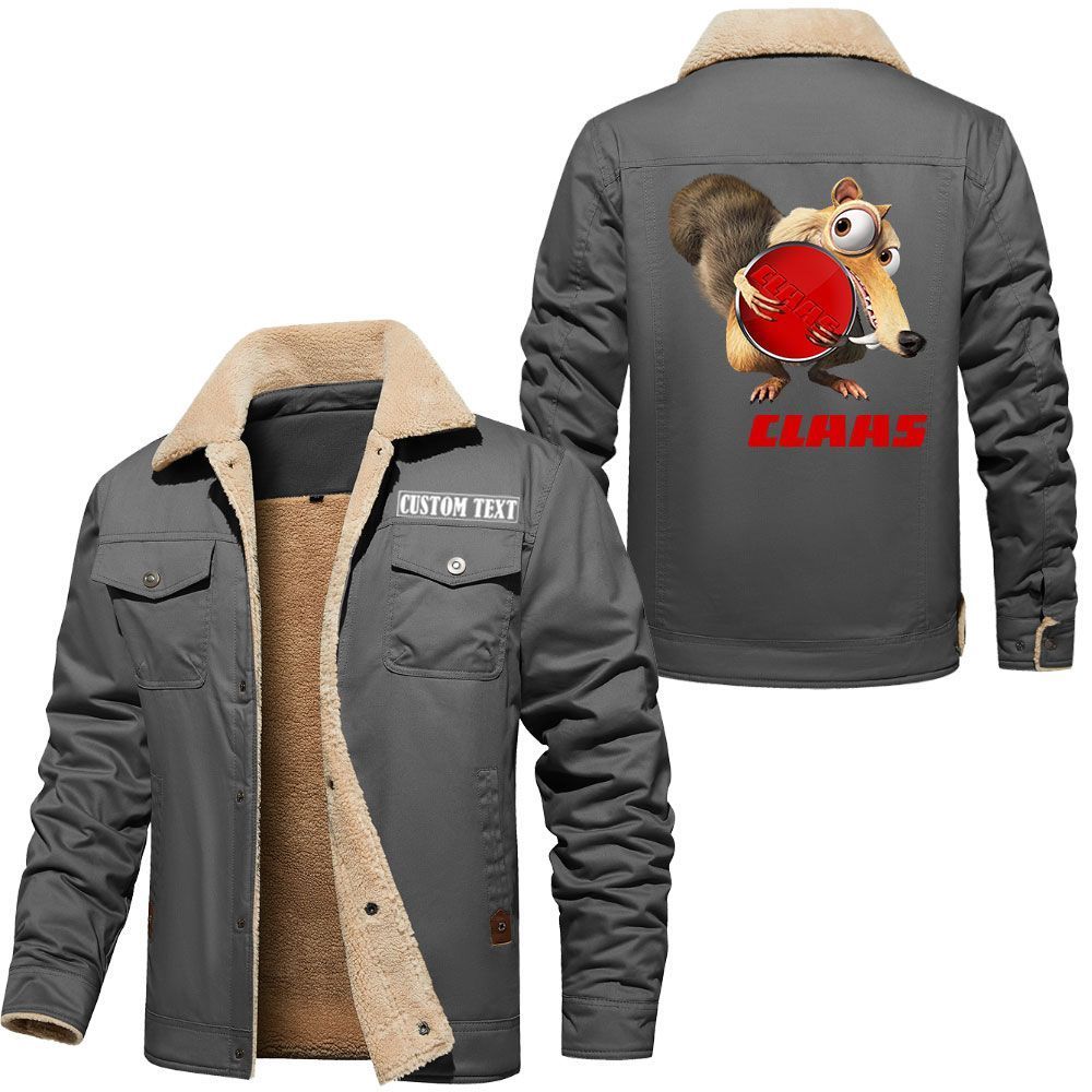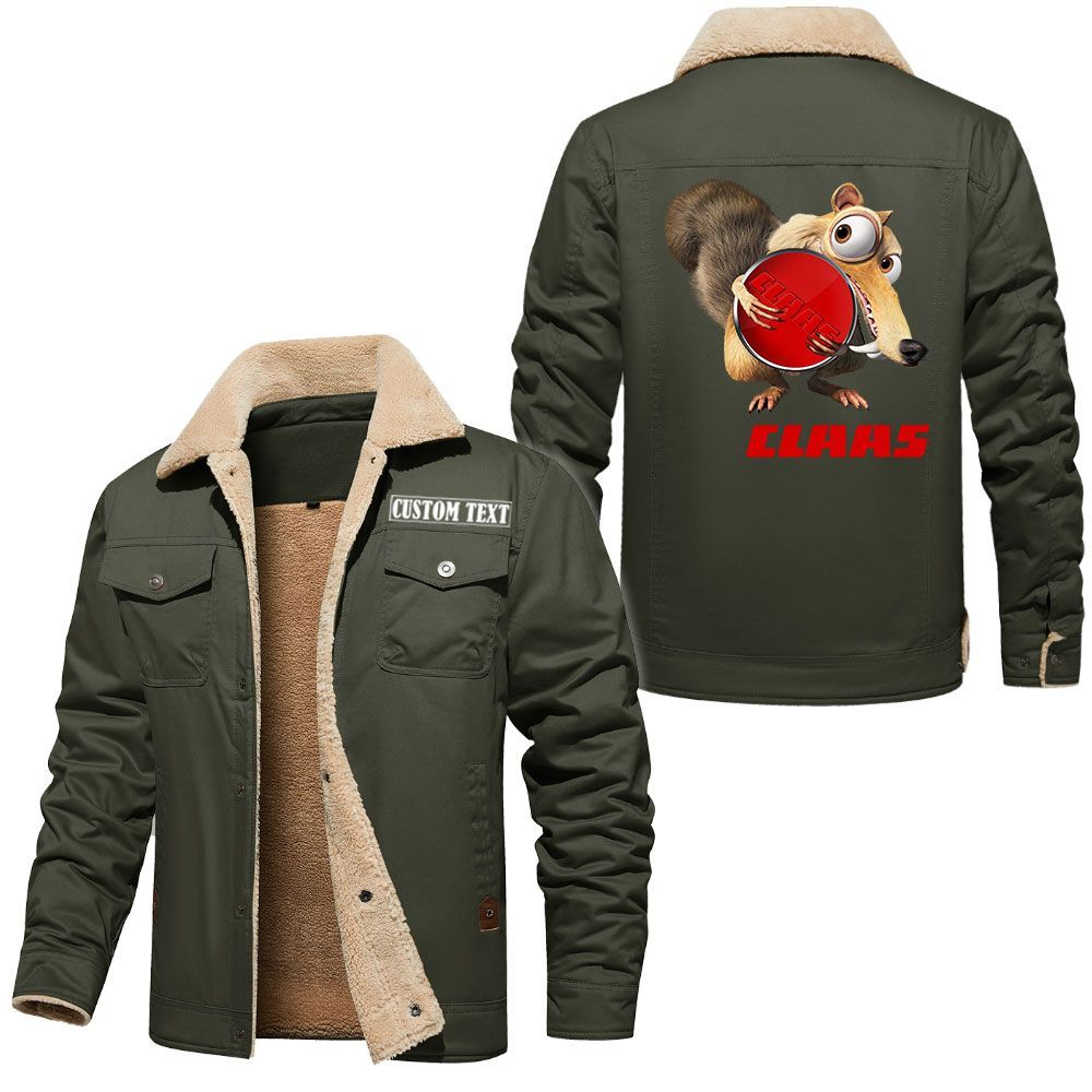 Claas Logo Custom Name Cargo Fleece Lined Cotton Jacket Scrat Ice Age Design Personalized Outerwear