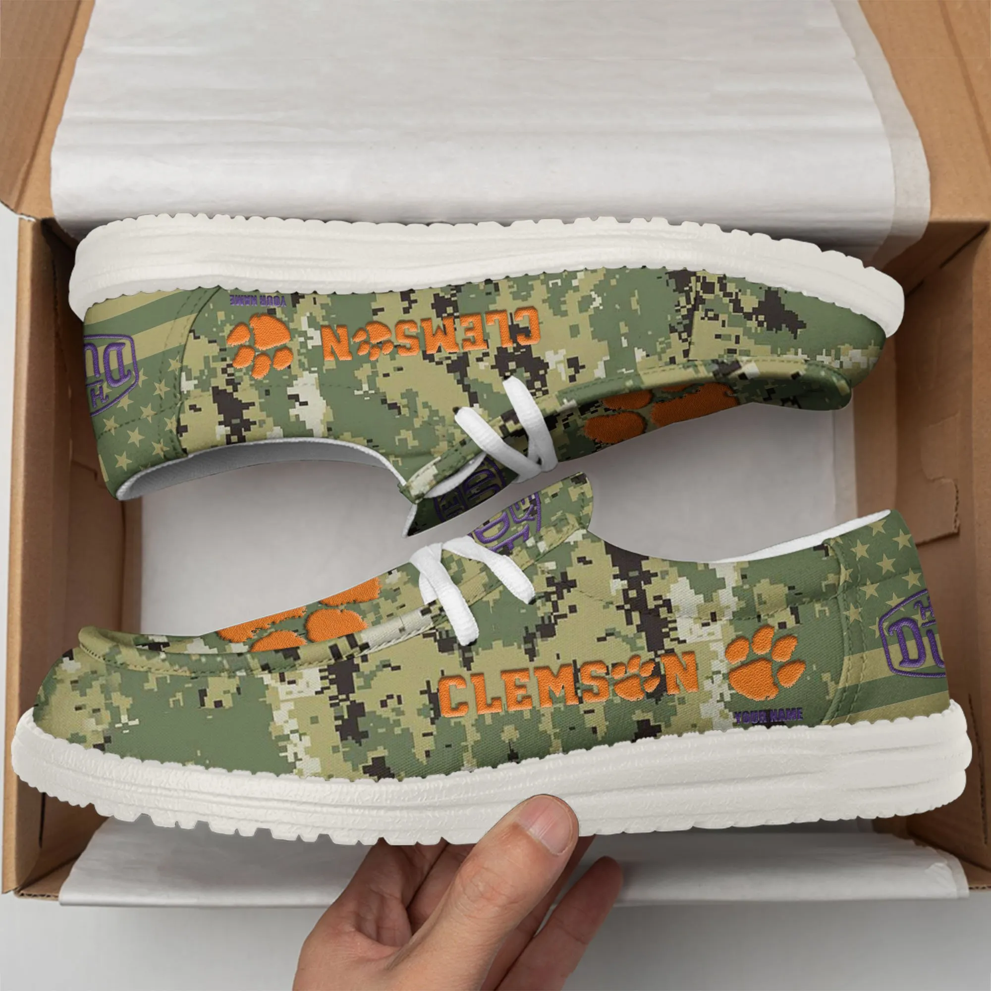 Clemson Tigers 3D Print Dude Shoes Camo Green Best Gift For Sport Fan