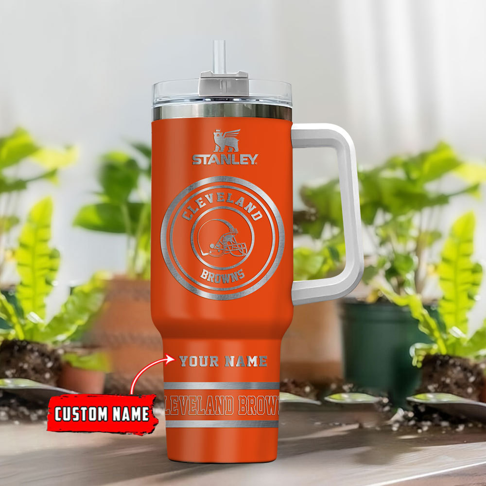 Cleveland Browns Nfl Custom Stanley Quencher 40Oz Stainless Steel Tumbler With Handle