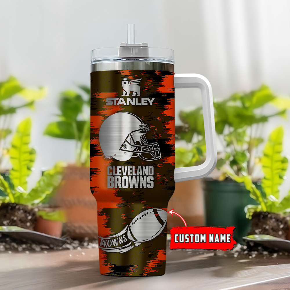 Cleveland Browns Nfl Custom Stanley Quencher 40Oz Stainless Steel Tumbler With Handle
