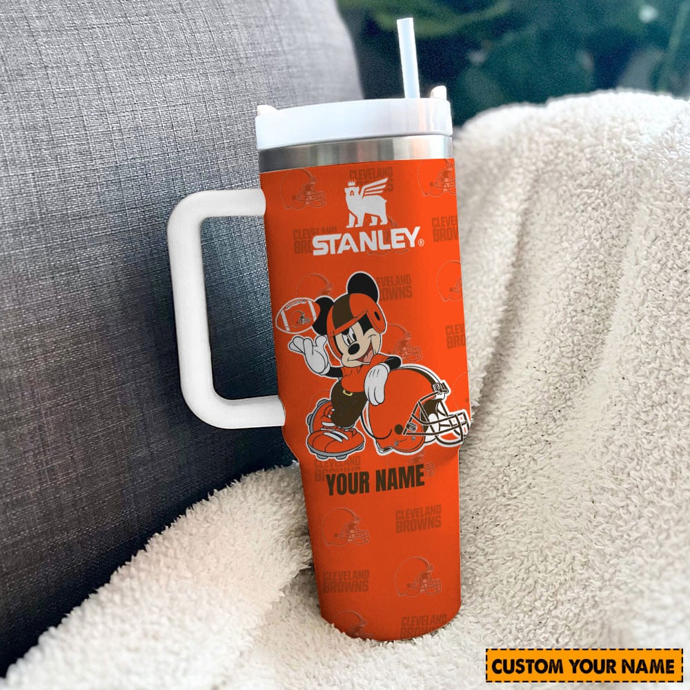 Cleveland Browns Nfl Mickey Mouse Custom Stanley Quencher 40Oz Stainless Steel Tumbler With Handle