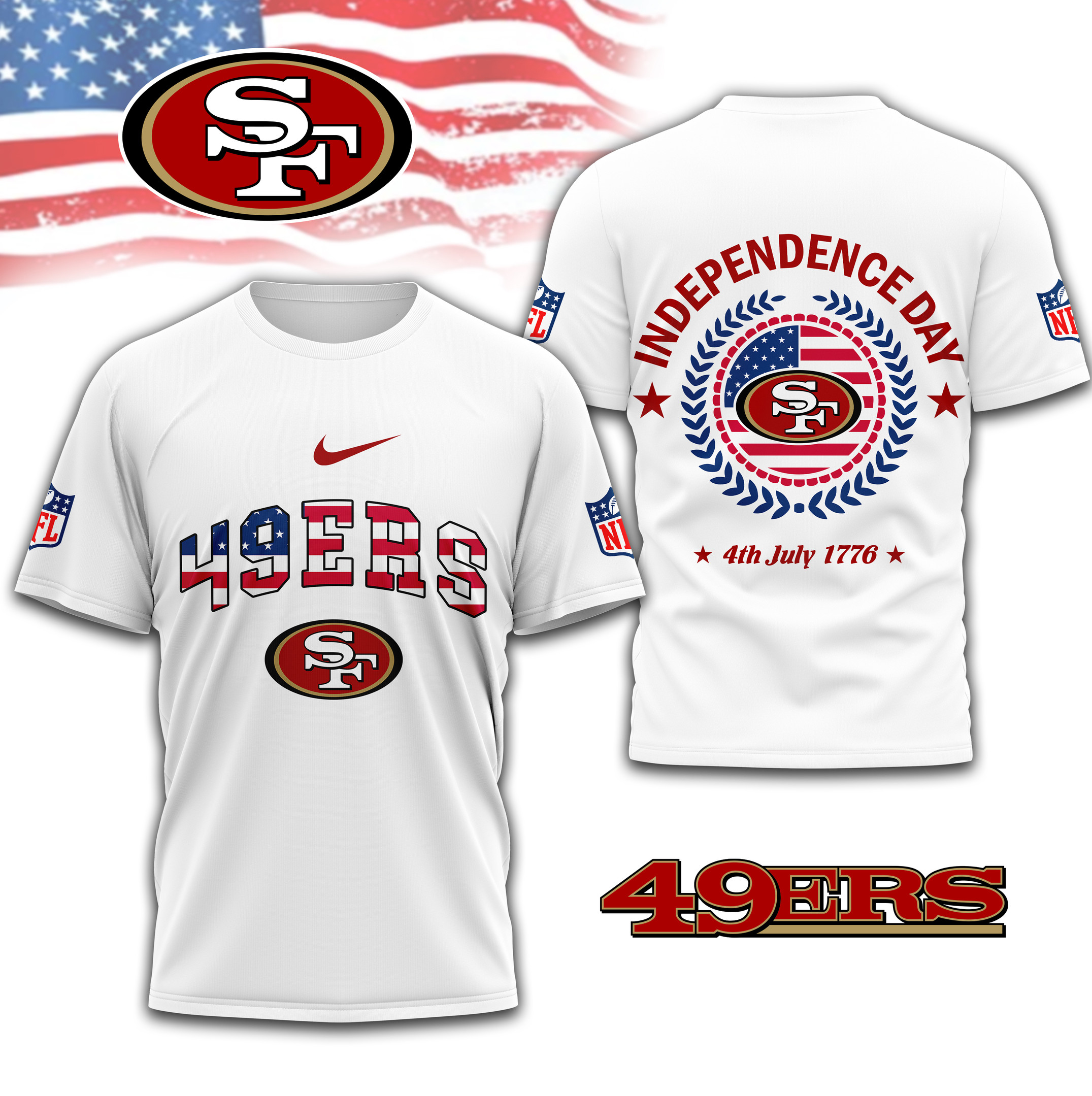 High-quality all-over print t-shirts with in-house manufacturing. Customize the front, back, and sleeves with logos, quotes, paintings, or drawings. No limit or minimum order quantity, making it easy to create a unique design quickly.