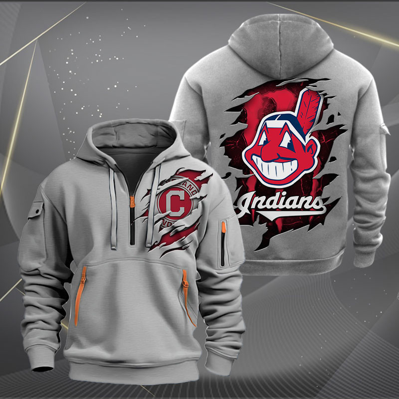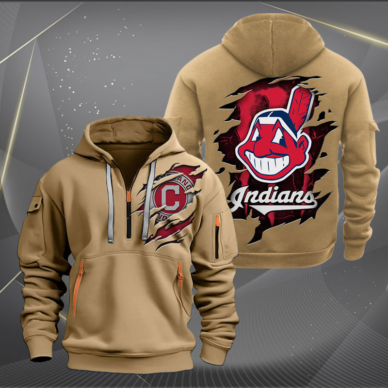 Cleveland Indians MLB Sport Logo Quarter Zip Hoodie