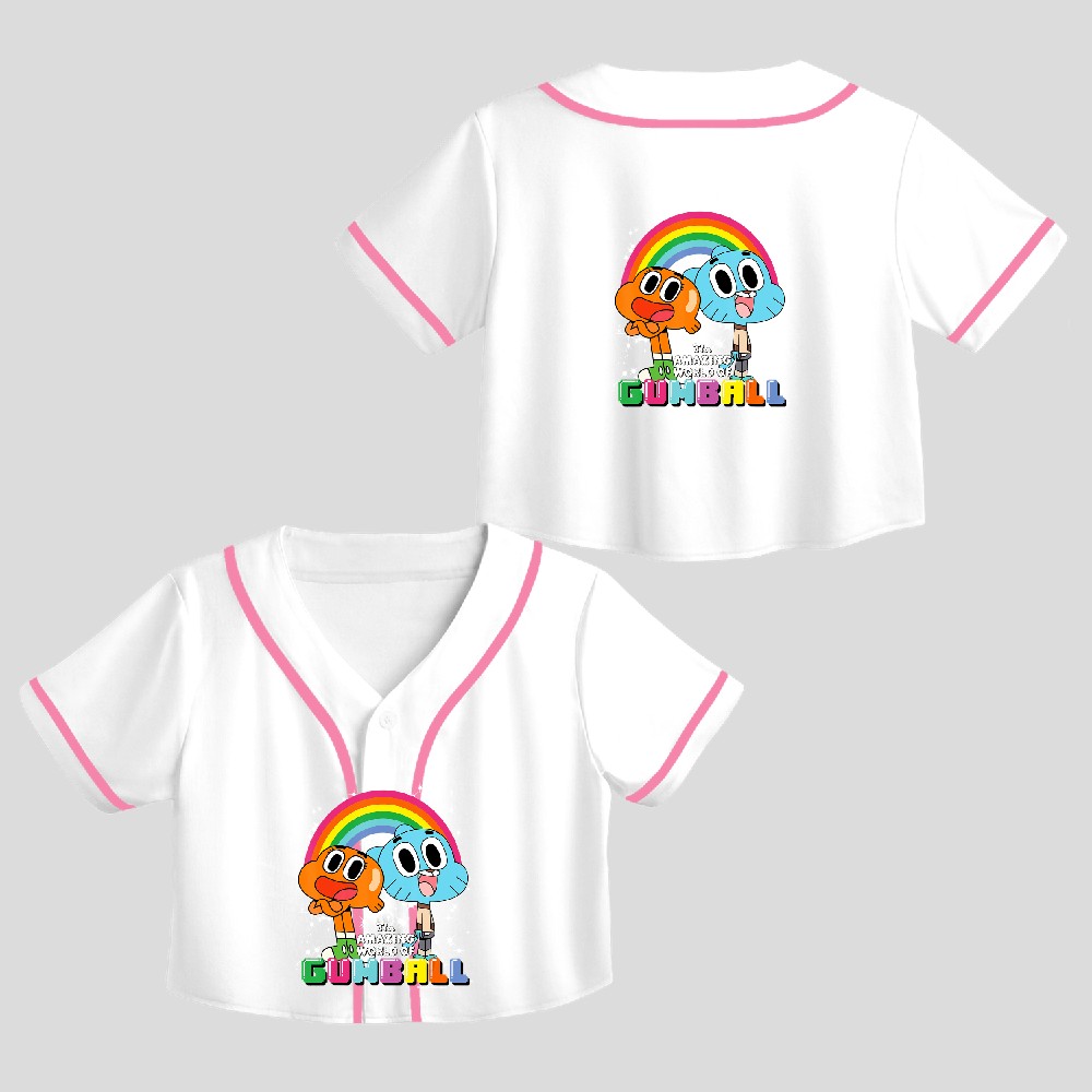 Cn The Amazing World Of Gumball & Darwin Rainbow Portrait Crop Top Baseball Jersey