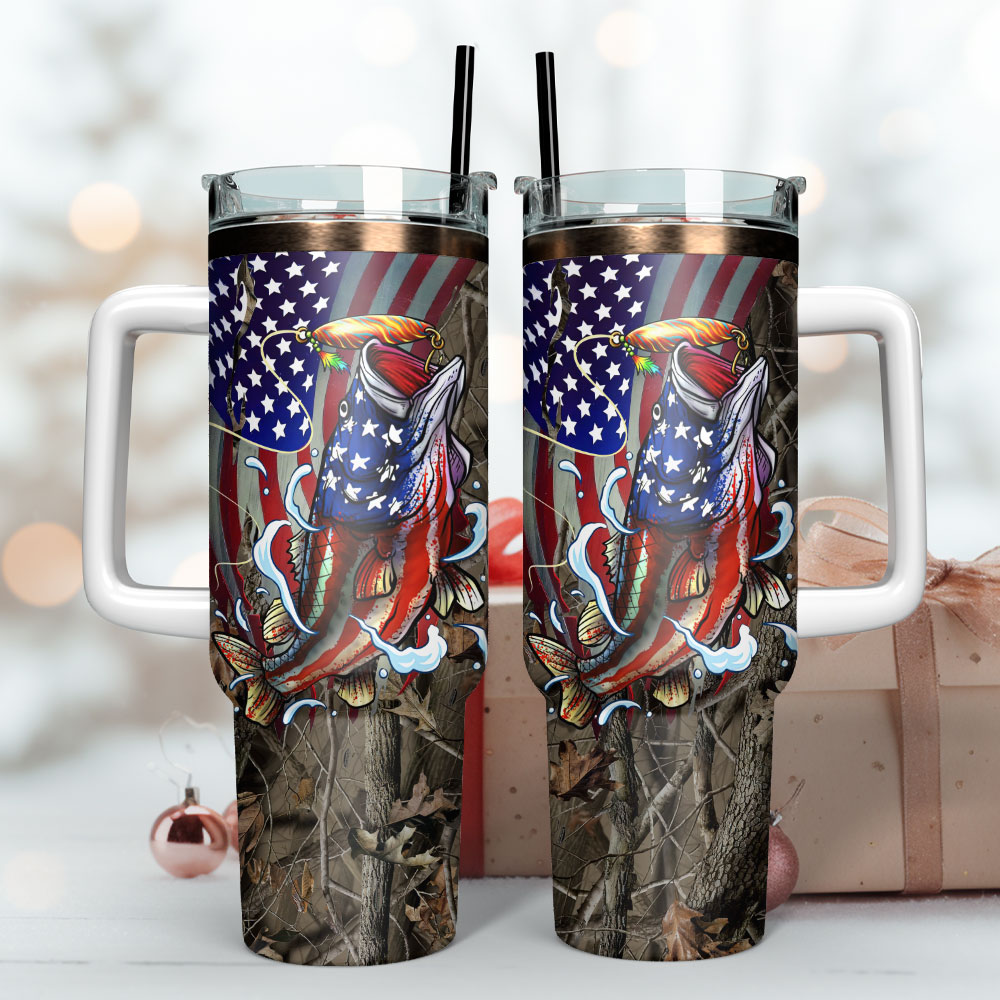 Cool Fishing American Flag Design Artwork Custom Stanley Quencher 40Oz Stainless Steel Tumbler With Handle