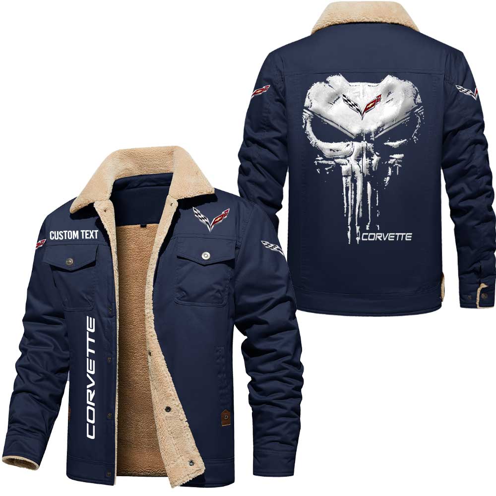 Corvette Logo Skull Design Custom Text Cargo Fleece Lined Cotton Jacket