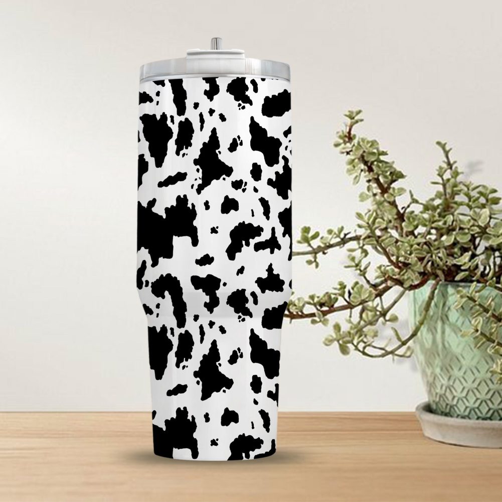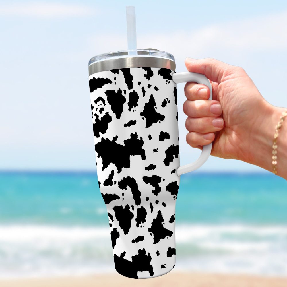Cow Print Custom Stanley Quencher 40Oz Stainless Steel Tumbler With Handle