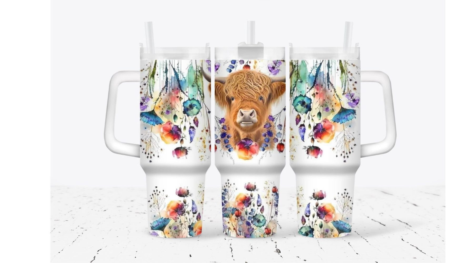 Cow With Flowers Custom Stanley Quencher 40Oz Stainless Steel Tumbler With Handle