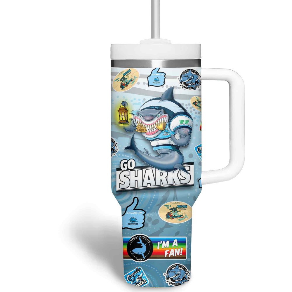 Cronulla-Sutherland Sharks Nrl Custom Stanley Quencher 40Oz Stainless Steel Tumbler