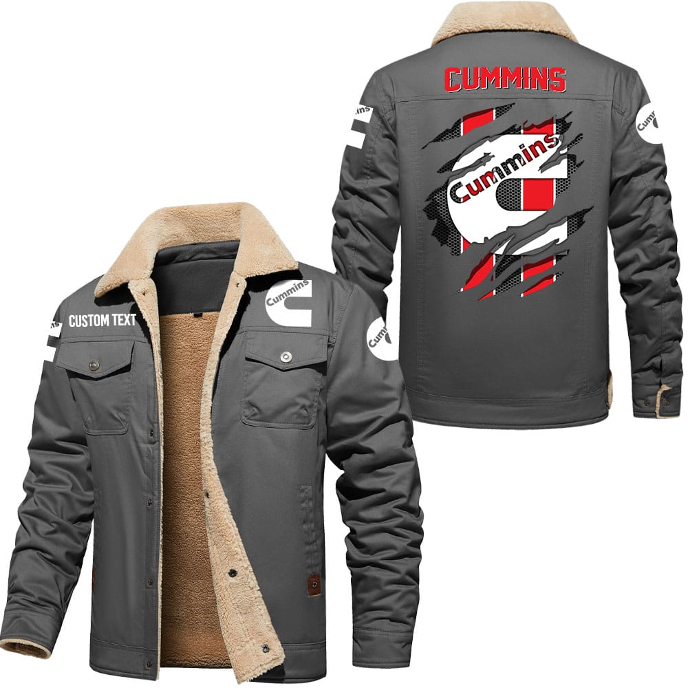 Cummins Logo Custom Name Cargo Fleece Lined Cotton Jacket