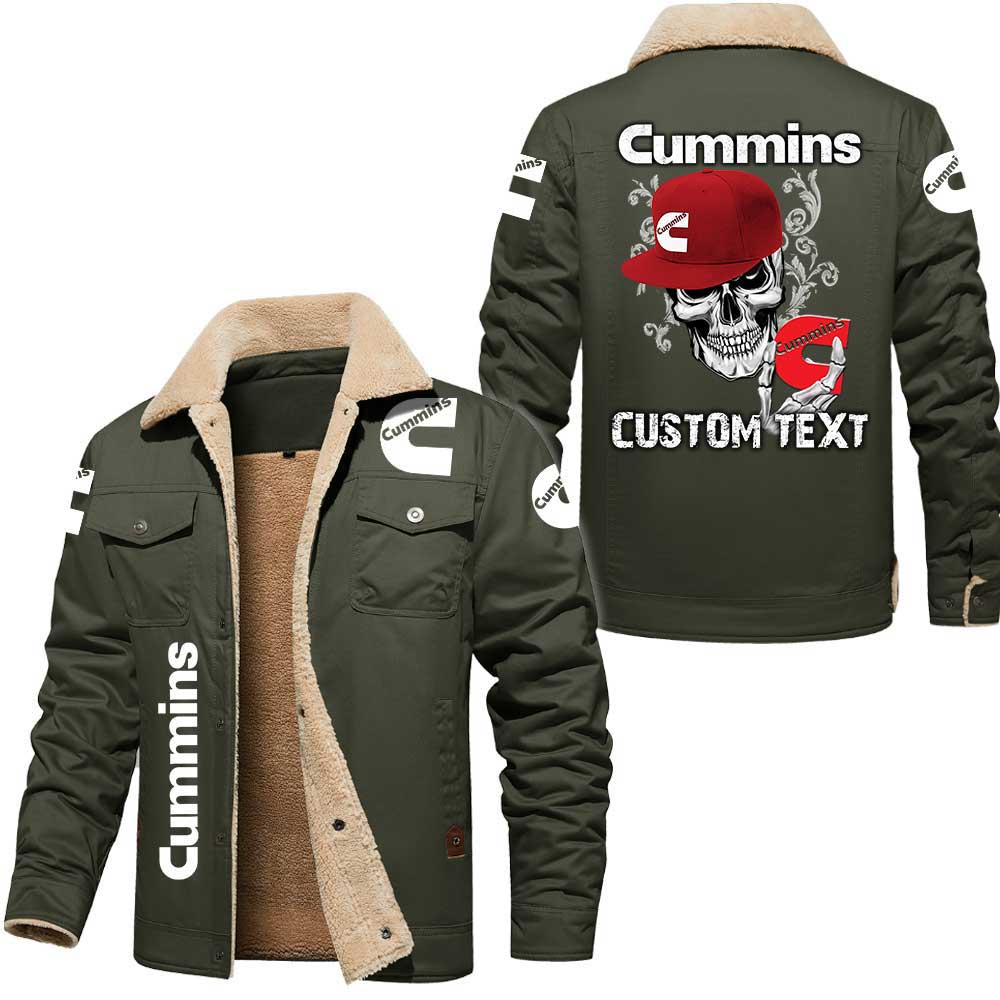 Cummins Skull Custom Name Cargo Fleece Lined Cotton Jacket