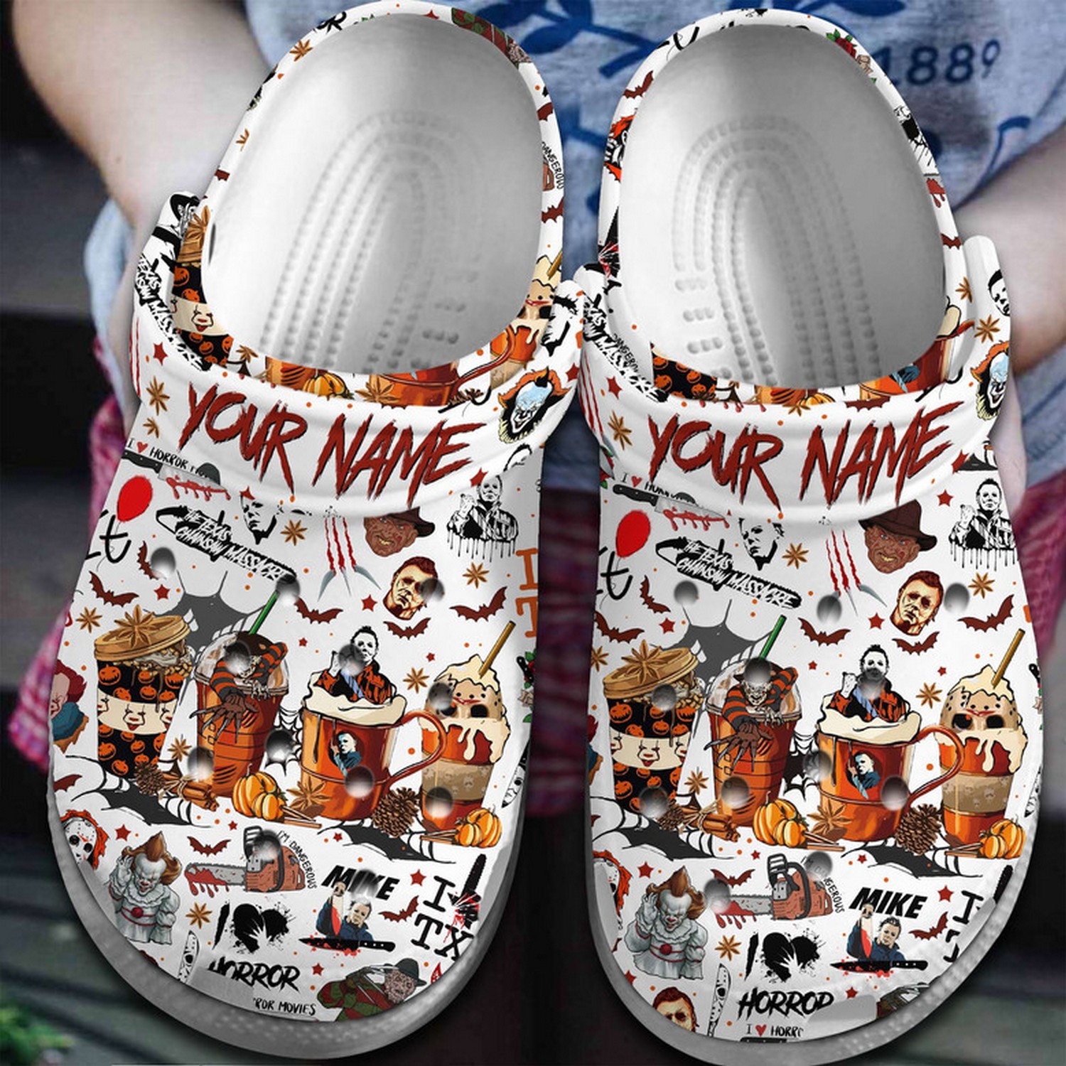 Custom Name Friday The 13th Jason Voorhees And Flower White Clogs For Kids And Adults