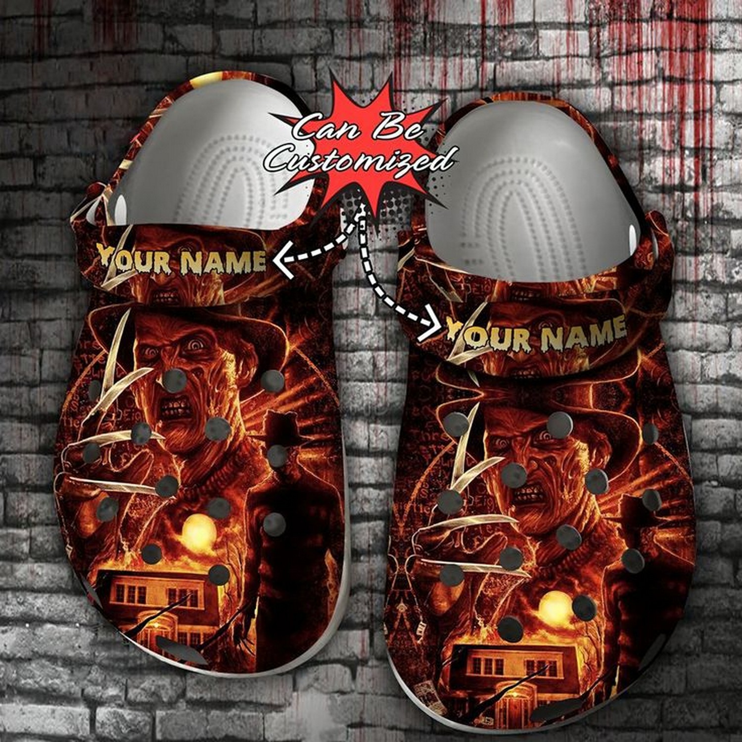 Custom Name Halloween Atlanta Braves Horror Voorhees Clogs For Kids And Adults