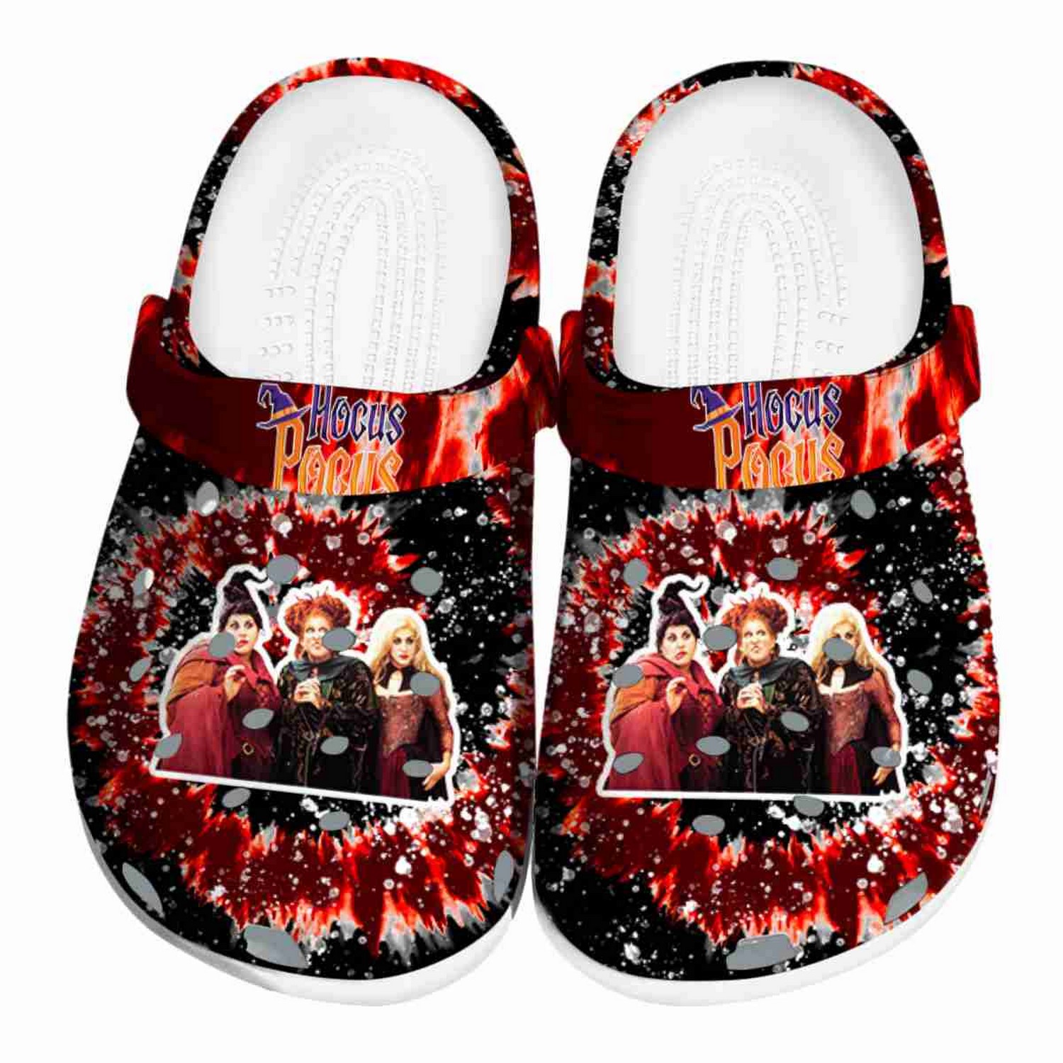 Custom Name Hocus Pocus Splatter Background Clogs For Kids And Adults