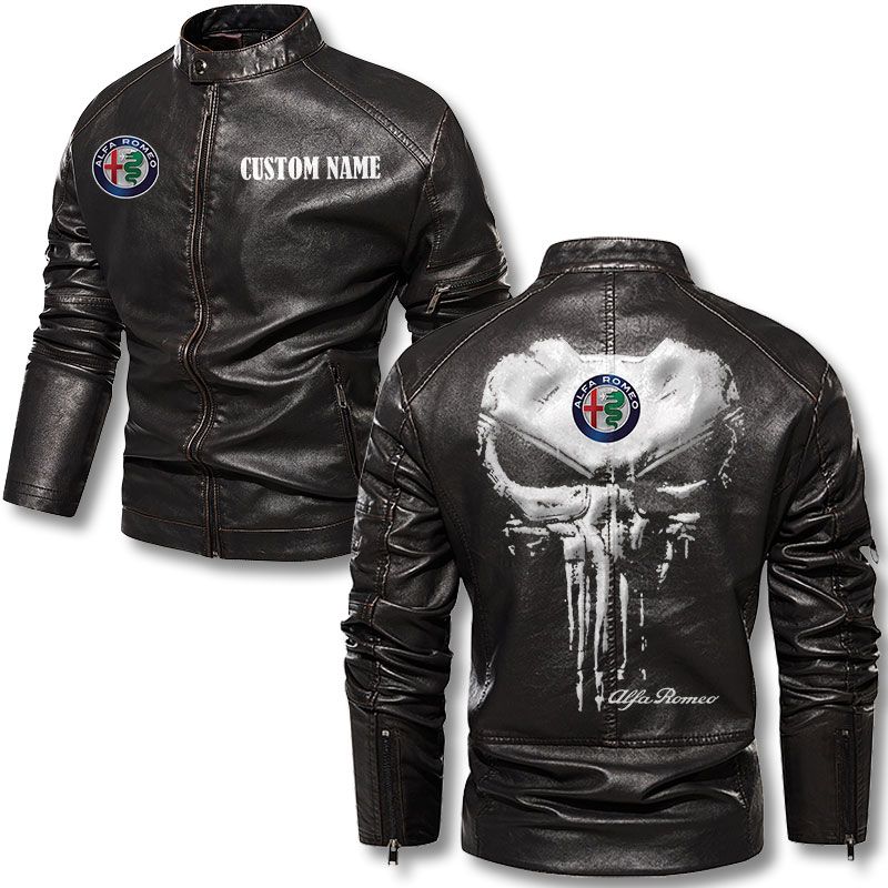 Custom Name Punisher Skull Audi-logo Motorcycle Leather Jacket