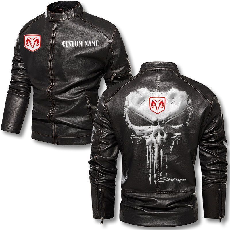 Custom Name Punisher Skull Dodge Motorcycle Leather Jacket