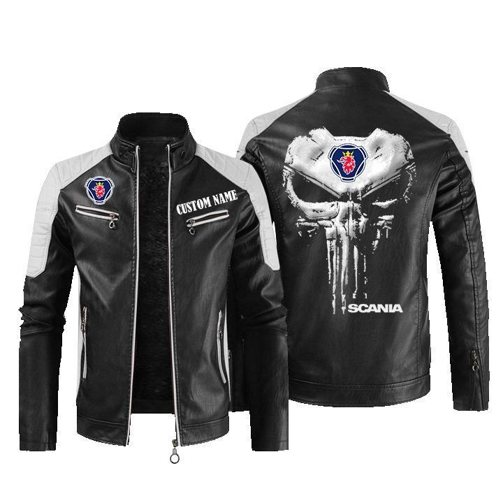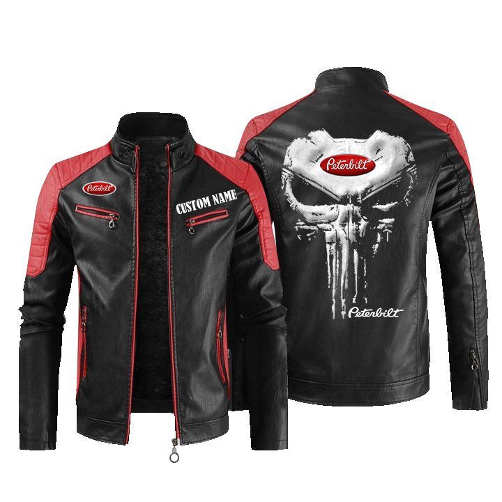 Custom Name Punisher Skull Peterbilt Leather Biker Jacket