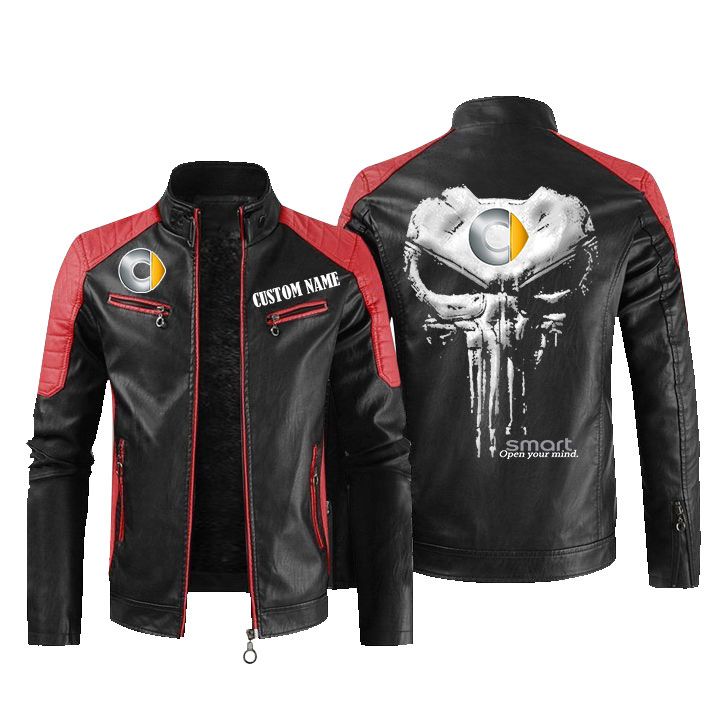 Custom Name Punisher Skull Smart Leather Biker Jacket