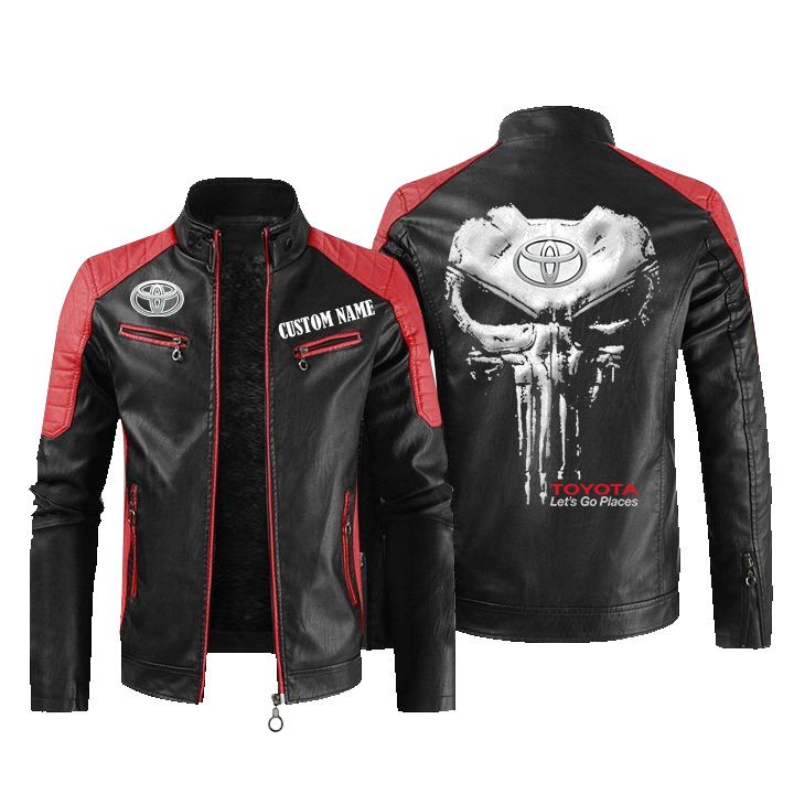 Custom Name Punisher Skull Toyota Leather Biker Jacket