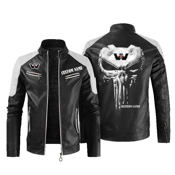 Custom Name Punisher Skull Valentino Rossi 46 Leather Biker Jacket
