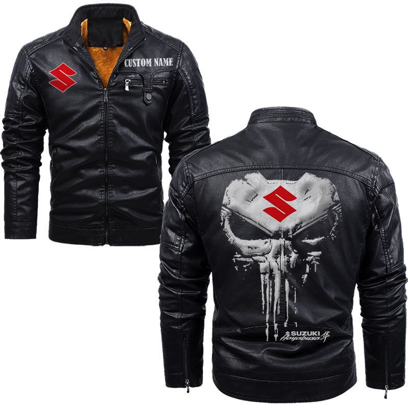 Custom Name Punisher Skull Valentino Rossi 46 Zip Pocket Fleece Leather Jacket