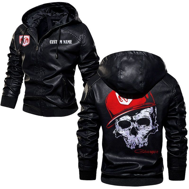 Custom Name Skull Design Deutz Fahr Leather Hoodie Jacket