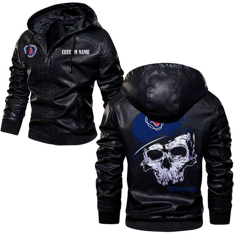 Custom Name Skull Design Fiat Leather Hoodie Jacket