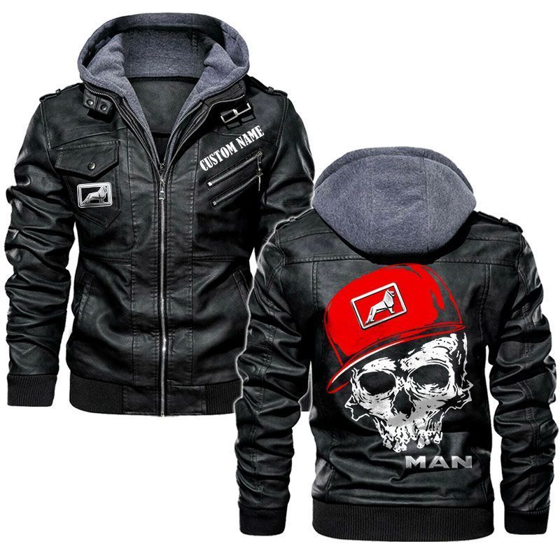 Custom Name Skull Design Gsx Hooded Leather Jacket