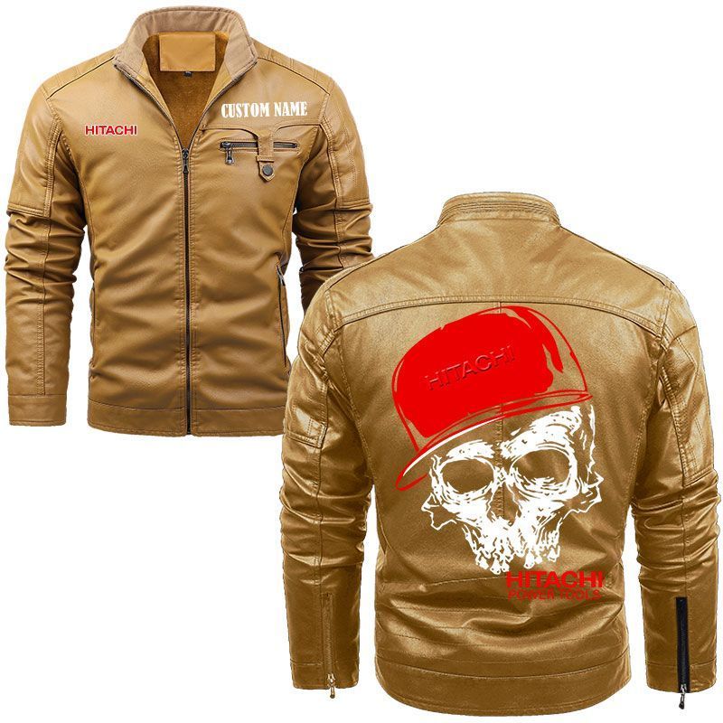 Custom Name Skull Design Hitachi Zip Pocket Fleece Leather Jacket