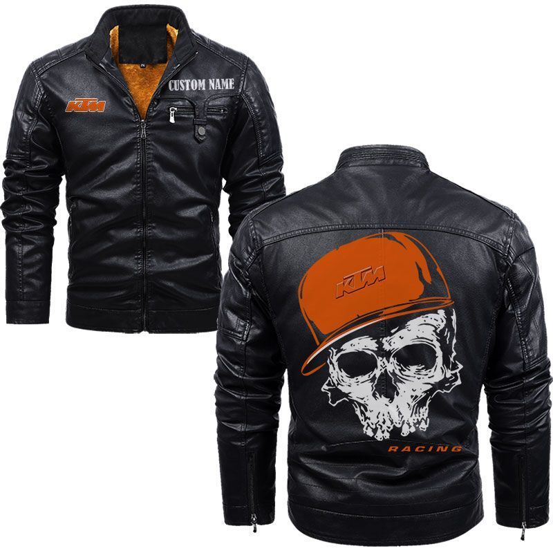 Custom Name Skull Design Komatsu Zip Pocket Fleece Leather Jacket