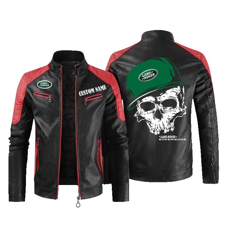 Custom Name Skull Design Land Rover Leather Biker Jacket