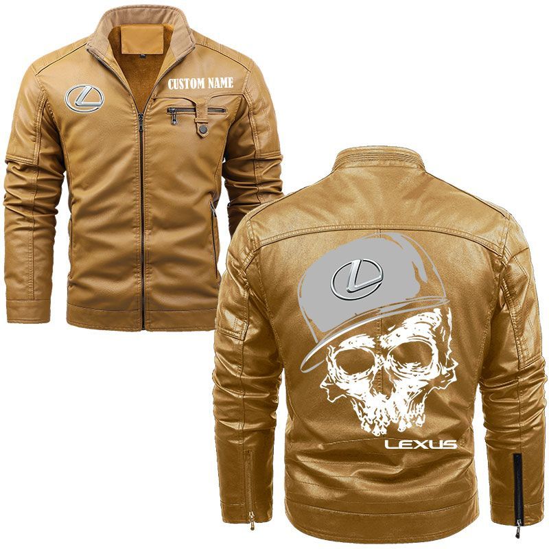 Custom Name Skull Design Lexus Zip Pocket Fleece Leather Jacket