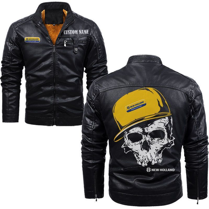 Custom Name Skull Design Mini Zip Pocket Fleece Leather Jacket