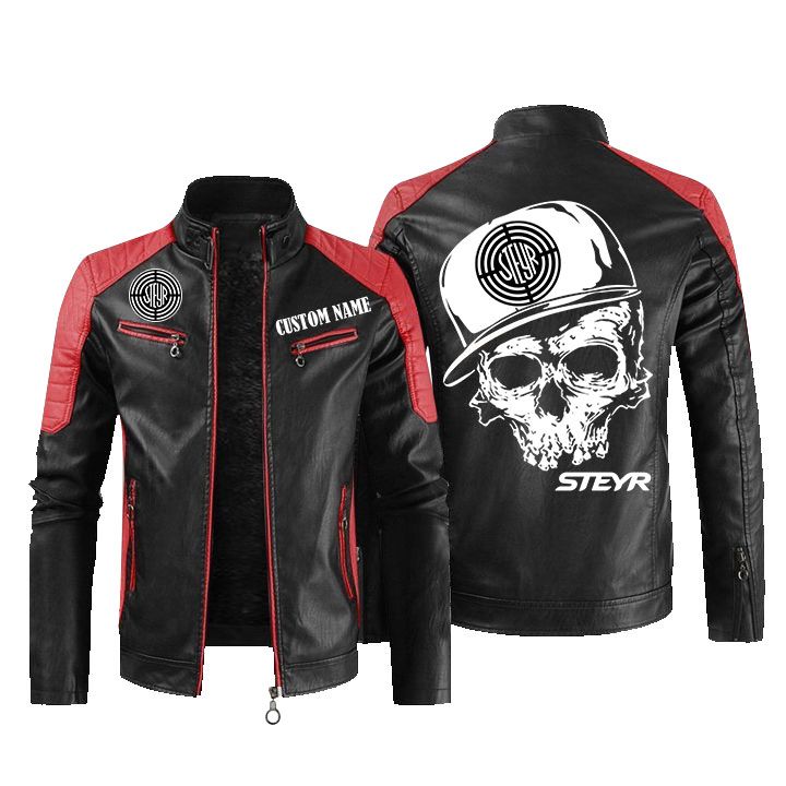 Custom Name Skull Design Steyr Tractor Leather Biker Jacket