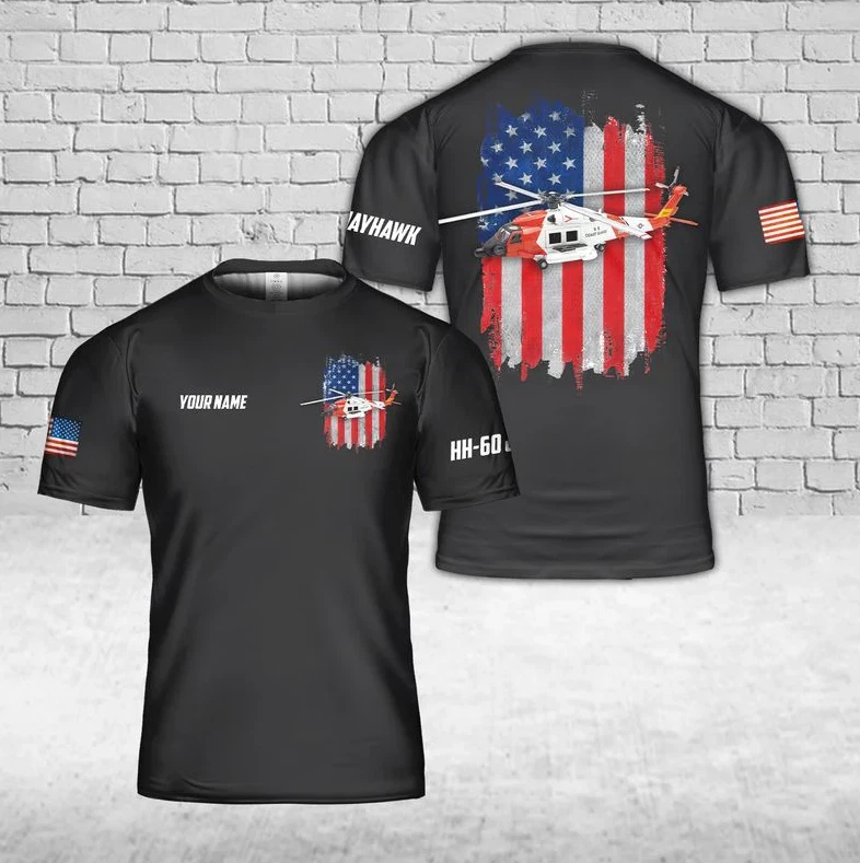 Custom Name Us Coast Guard Sikorsky Hh-60 Jayhawk Helicopter 3D T Shirt