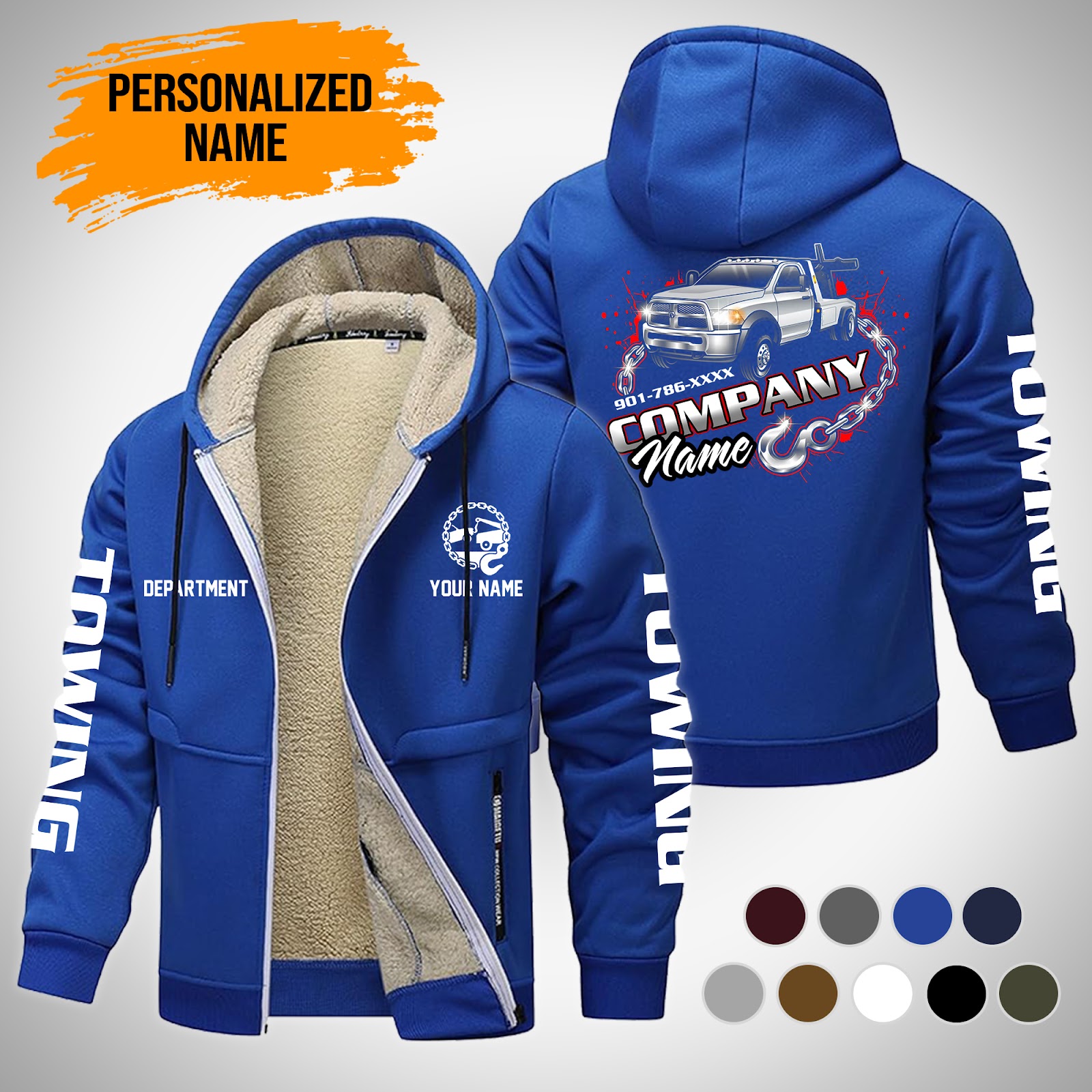 Customized Name Tow Truck Lamb Fleece Thick Coat Dark Grey