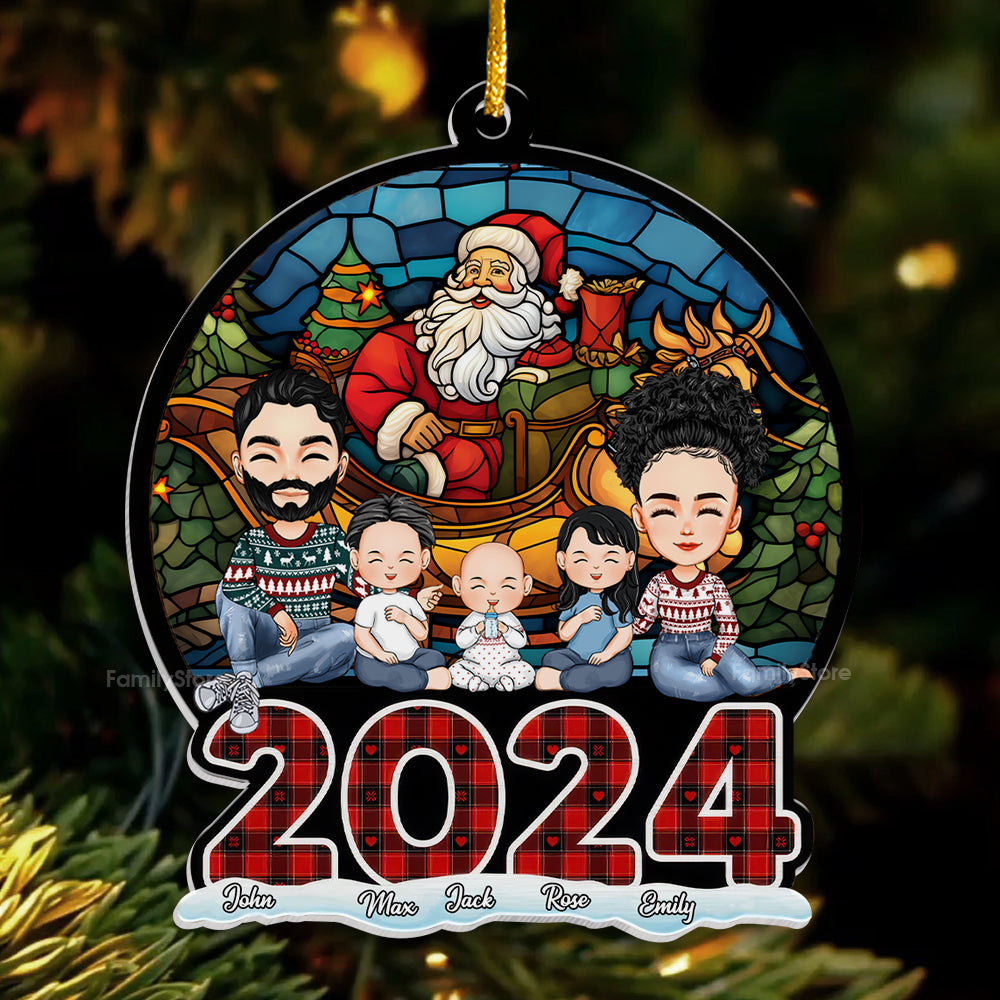 Cute Baby Santa And Reindeer Gift For Family Personalized Acrylic Ornament