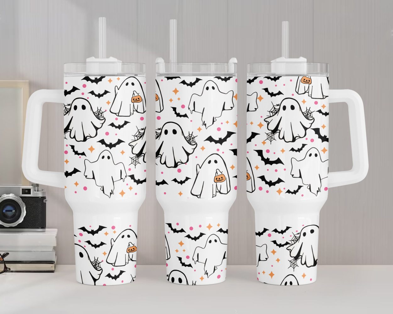 Cute Ghost Halloween Custom Stanley Quencher 40Oz Stainless Steel Tumbler With Handle