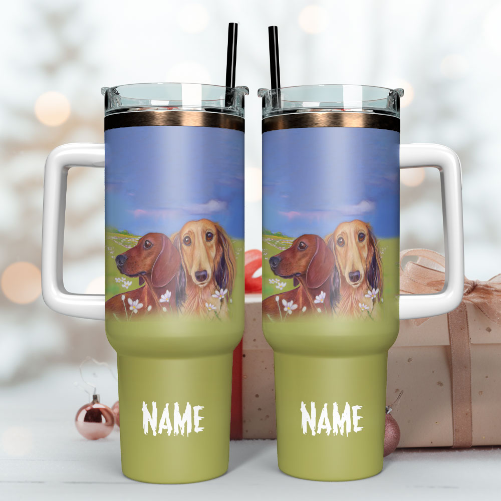 Dachshund Dog Custom Stanley Quencher 40Oz Stainless Steel Tumbler With Handle