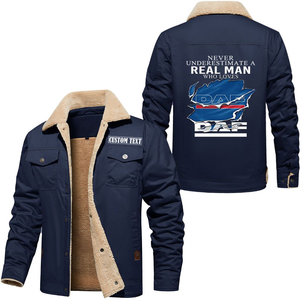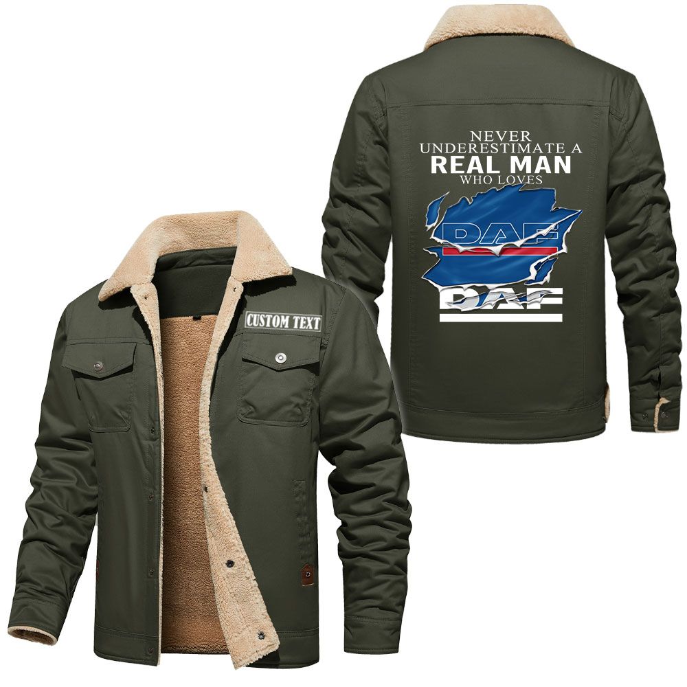 Daf Logo Custom Name Cargo Fleece Lined Cotton Jacket A Real Man Who Loves Personalized Outerwear
